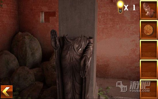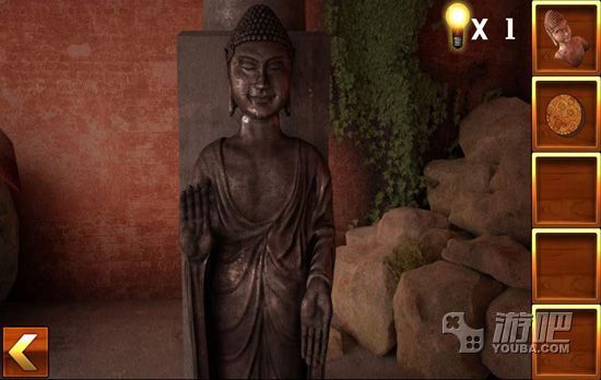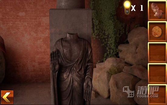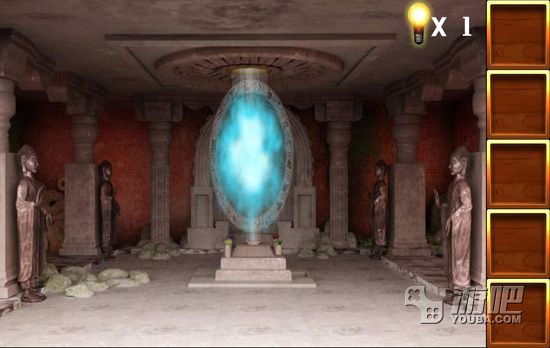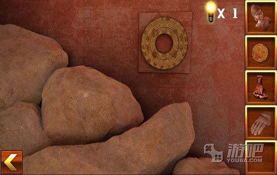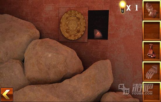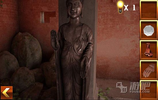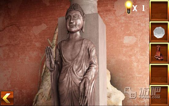 4.点击佛像的右边,找到佛像的手部,然后将圆盘放入墙壁中,调整好图案,得到一块宝石;