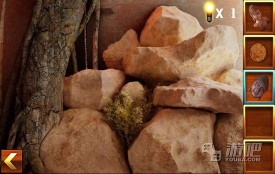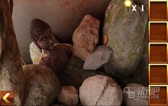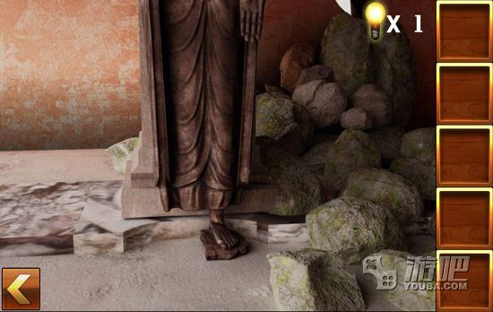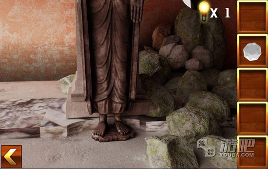 3.点击佛像左边的石堆找到佛像的脚部;